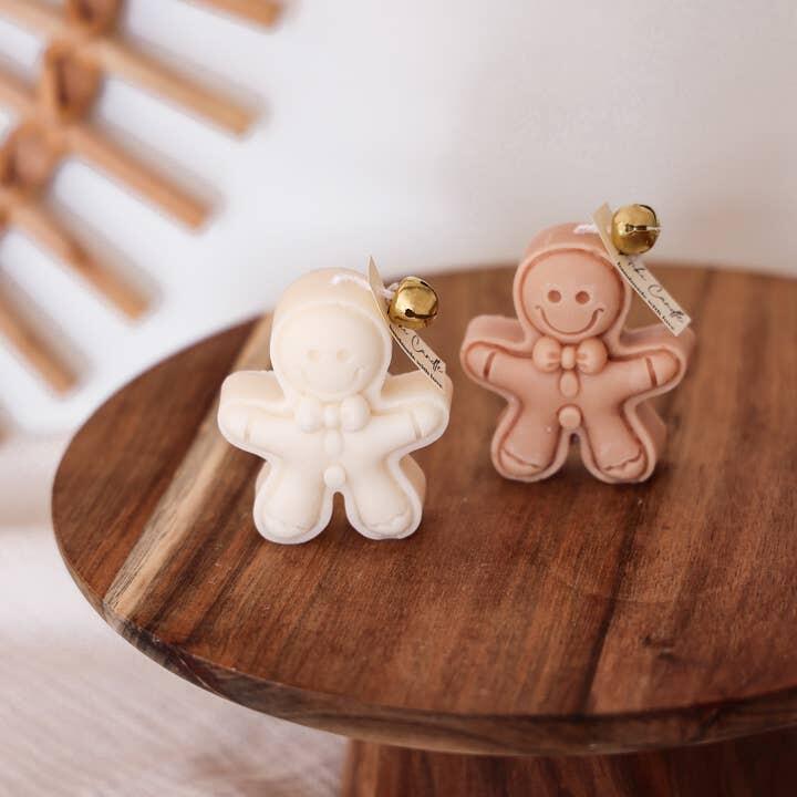 Questa candela in cera di canola fatta a mano a forma di omino di pan di zenzero è semplicemente adorabile