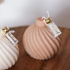 La candela a sfera per albero di Natale fatta a mano con un design classico colpisce per il suo aspetto festoso.